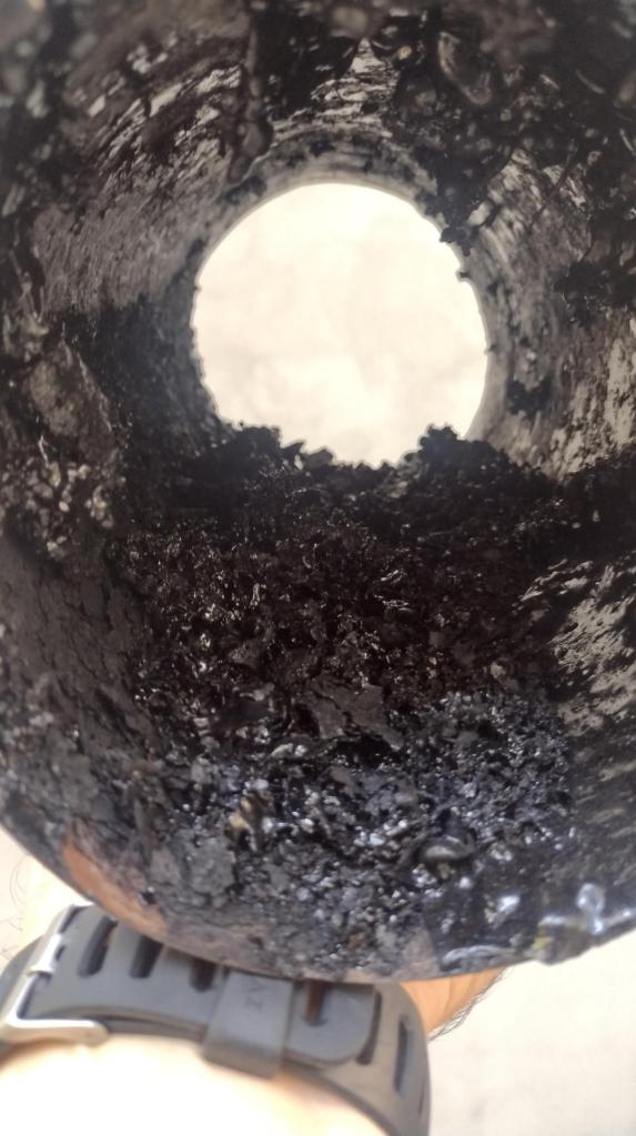 Натрупаните сезонни отпадъци дават най-ясна представа за качеството на горене. Количеството пепел при Коминче е много малко, а при саждите лесно може да видите една от причините за повече топлина у дома. По-долу съм представил натрупаните в димоотвода сажди характерни за Коминче и тези от печката закупена от мен преди години. Коминче генерира креозот в кюнеца, но в наистина скромни количества. Принципно причина за креозота и влагата в комина са недоизсушените дърва, а при пелетите влажността на горивото е минимална и такъв да не се образува. Очевидно не е така – вижте препратки илюстриращи проблемите, с които се сблъскват дори потребителите на пелетни котли: https://forum.napravisam.bg/viewtopic.php?f=10&t=61158#collapsePushBox относно конденза, а също така и за креозота: https://forum.napravisam.bg/viewtopic.php?t=13260&start=375#collapsePushBox Освен леко овлажняване на комина в частта над керемидите, Коминче не генерира количества влага от конденз, каквато се описва от потребителите на пелетни котли и камини. Независимо от ниската изходяща температура на димните газове (между 45 и 90 градуса С) отлаганията по комина са минимални.