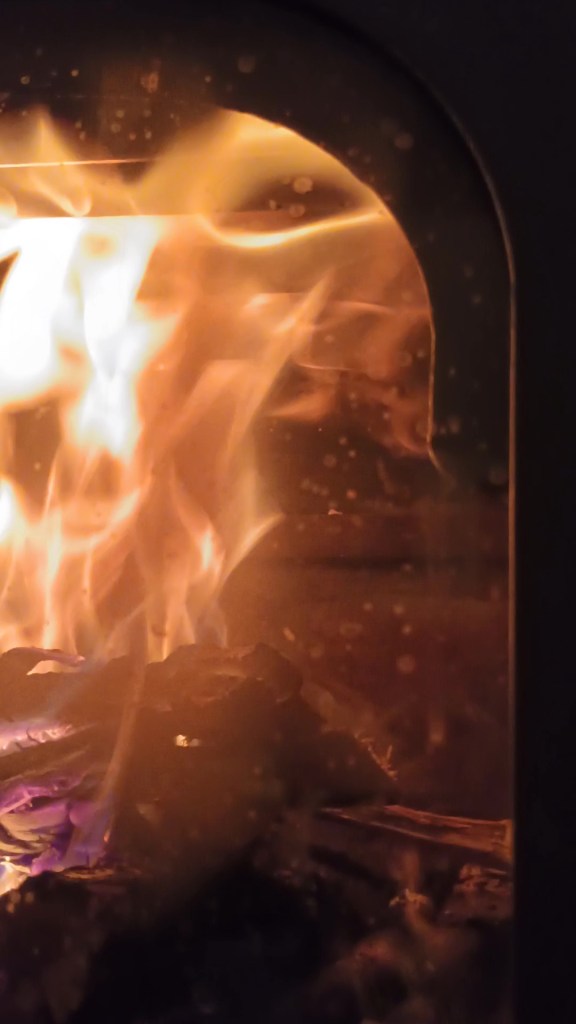 Зареждането на печката за работа тип „горно горене“ позволи работа с много малко количество дърва в продължение на 3 часа. Засмукването на въздух само през вратата доведе до силно обдухване на стъклото и то престана да се опушва. На клиповете в този пост може да се убедите, че след многократно ползване следите по стъклото са съвсем малки. Все пак трябва да отбележа, че печката се ползва в дни с температура под нулата и то не винаги. Както съм написал Коминче затопля спалнята ни над 20 градуса през стълбищната клетка и пода.